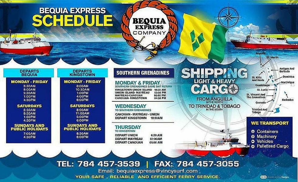 For More Information Contact: Tel: 784-457-3539 or Fax 784-457-3055) or Email: bequiaexpress@vincysurf.com.
